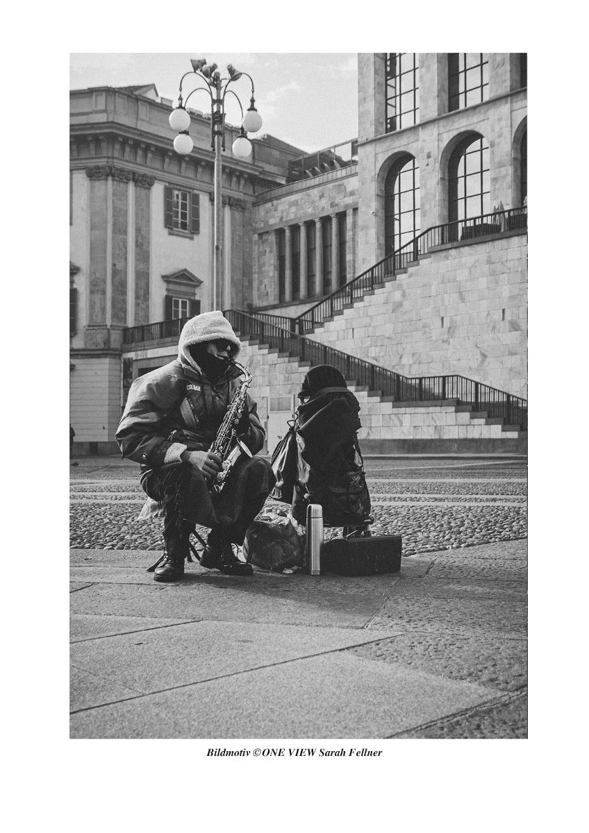 Entdecke die Welt durch meine Linse mit diesem einzigartigen T-Shirt. Jedes Bild erzählt eine Geschichte und tolle Momente festhält, wie diesen Straßenmusiker mitten in Mailand, der mit Leidenschaft seine Musik spielte. Hol dir jetzt dein persönliches Stück Fotokunst und werde Teil meiner Reise!